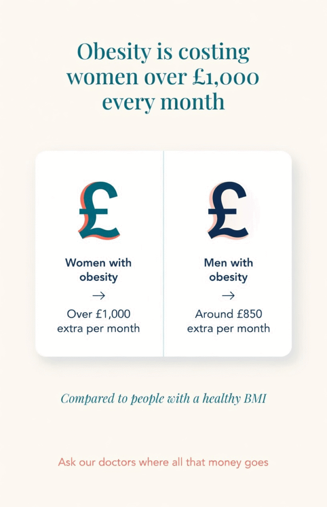 Women living with obesity spend over £1,000 more per month than women with a healthy BMI.